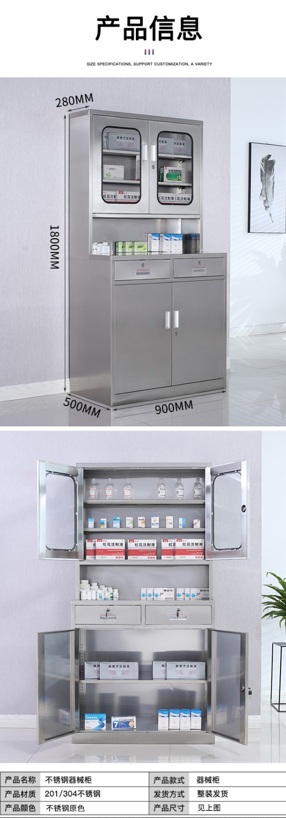 不銹鋼西藥柜900寬